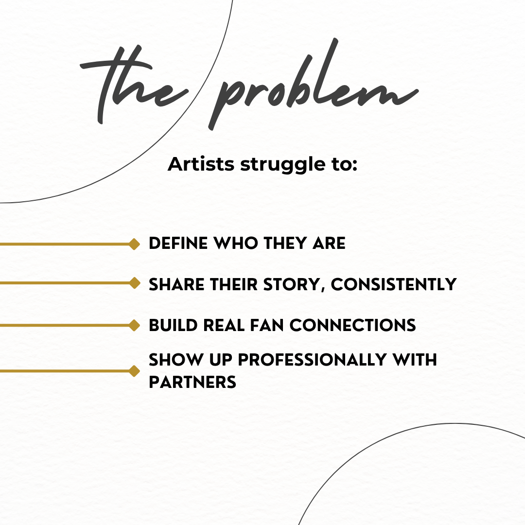 👉 Artists struggle to clearly define who they are, what they stand for, and how to share that story consistently.